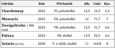 - Pálava, ročník 2023 s přívlastkem VB, sladké